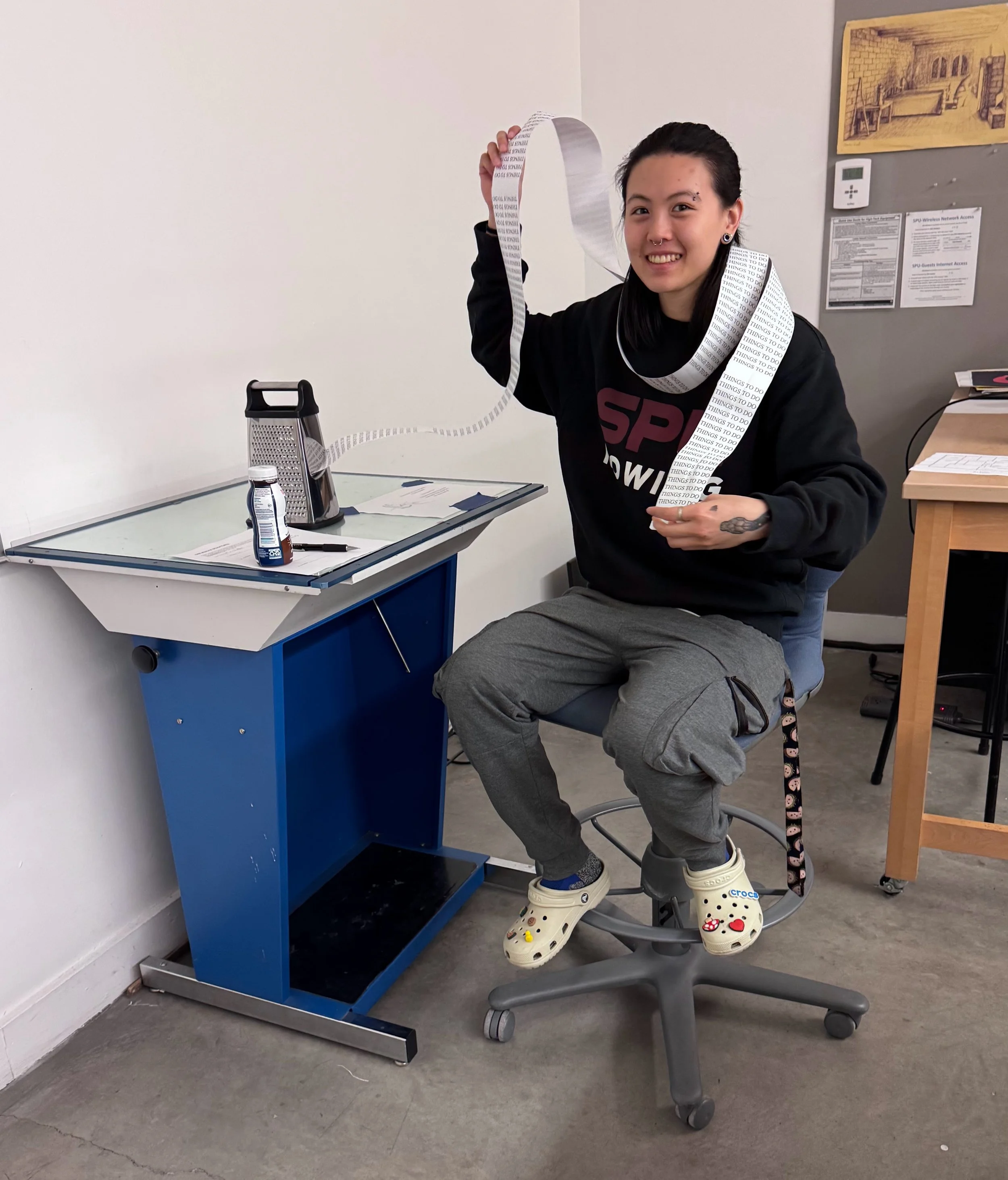 Oftentimes, life feels like a never-ending task that is impossible to complete because trying to stay on the grind grinds you up. It is exhausting, and even when you think you can just ‘wrap this up real quick’ it is never that simple. On top of it, the list must be completed in a certain way. So oftentimes you can’t get to everything because the method is simply too painful. And yet, other things will inhibit you from stopping. You can’t slow down, or else your dreams and goals fail, and yet it seems impossible to keep going. I used the prop of a cheese grater as a metaphor for this feeling of injury as you try to complete tasks, in this case, homework on the computer.